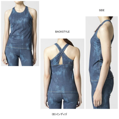 デニム調のプリントがポイントのインナーブラ付きタンクトップは、インドアからアウトドアまで、あらゆるエクササイズシーンで着用できるアイテムです。
