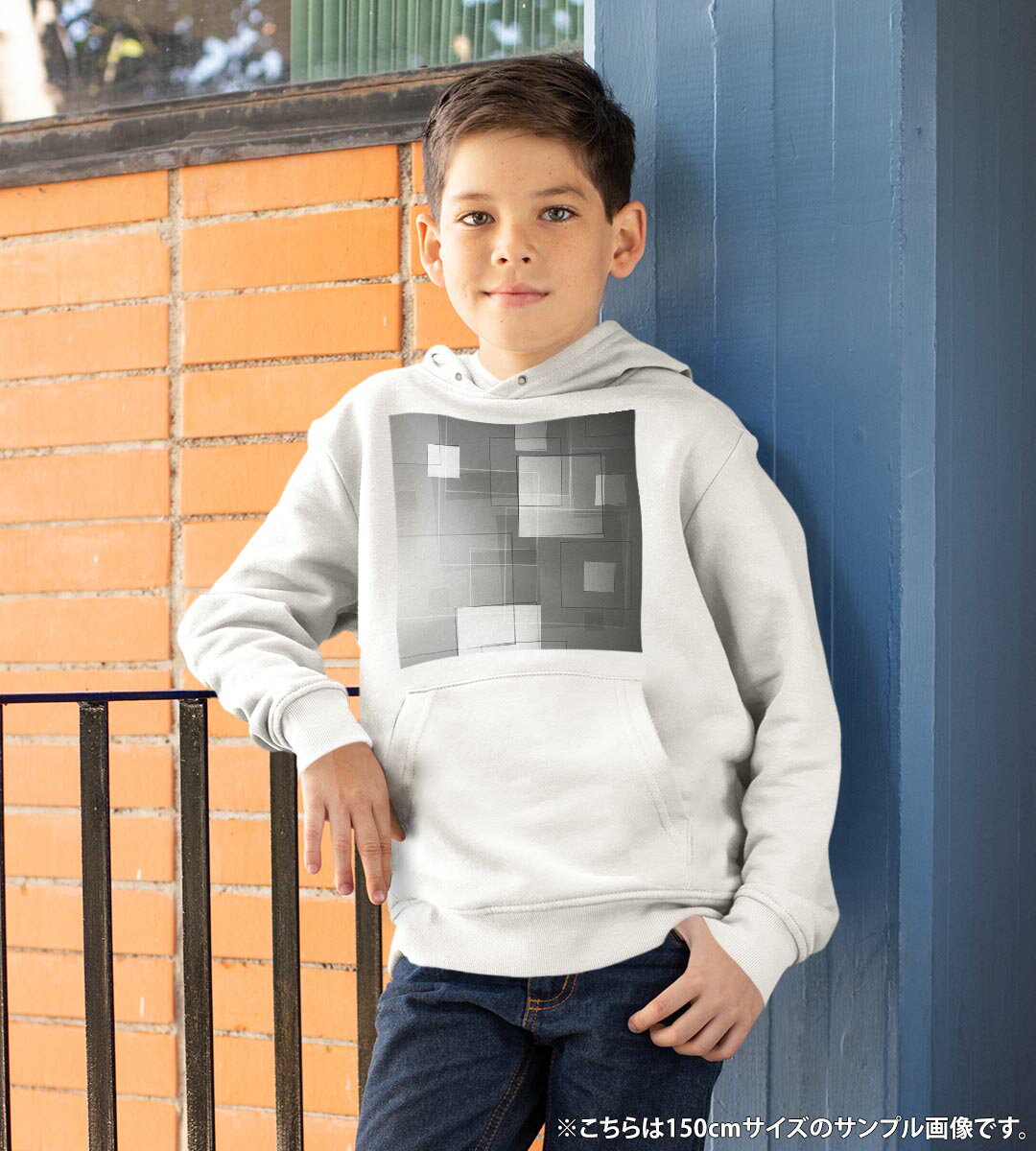 パーカー キッズ ホワイト グレー ブラック デザイン 110 130 150 parker hooded sweatshirt フーディ 白 黒 灰色 子供 男の子 女の子 000474 タイル 黒