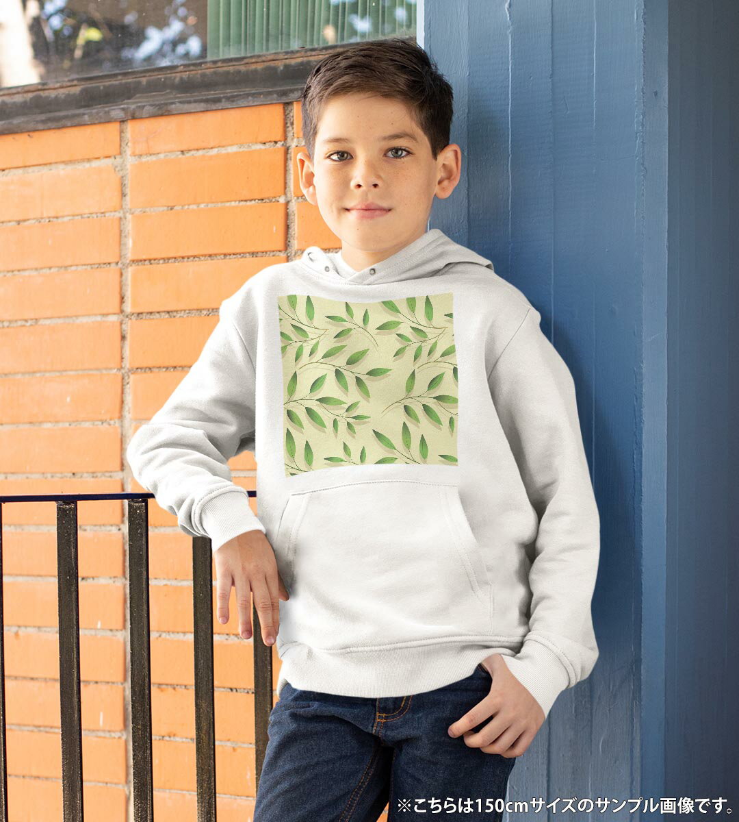 パーカー キッズ ホワイト グレー ブラック デザイン 110 130 150 parker hooded sweatshirt フーディ 白 黒 灰色 子供 男の子 女の子 000717 リーフ 葉