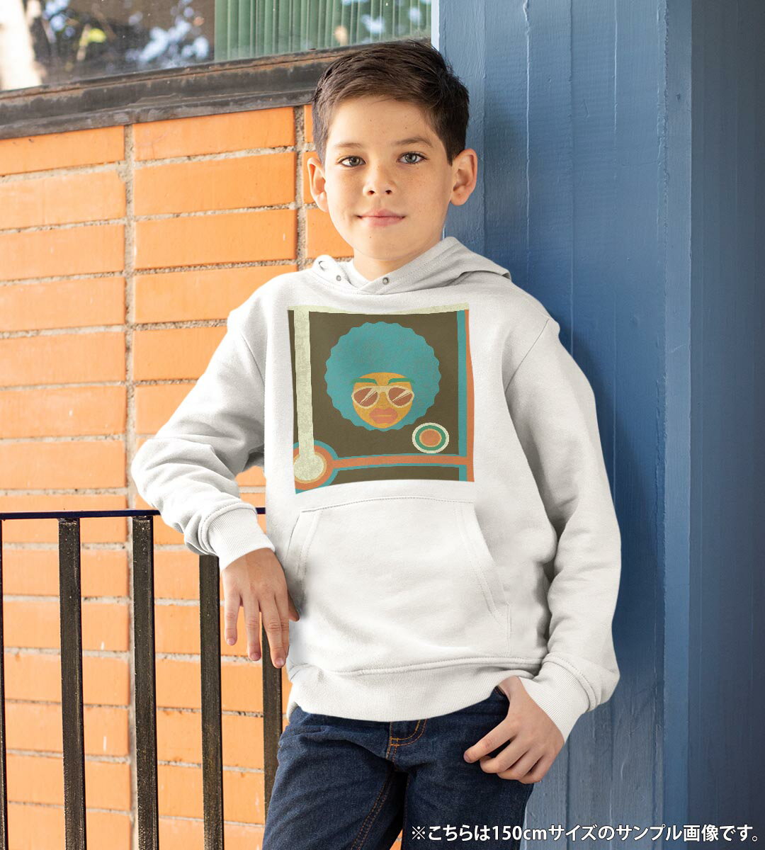 パーカー キッズ ホワイト グレー ブラック デザイン 110 130 150 parker hooded sweatshirt フーディ 白 黒 灰色 子供 男の子 女の子 007372 アフロ 人物 イラスト