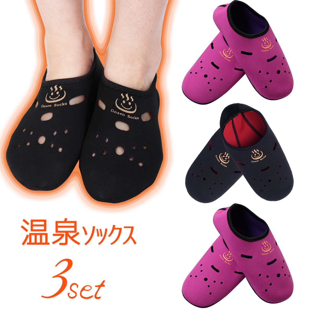 【3足組&送料無料】あったかグッズ 足 靴下 暖かい 発熱ソックス 冷え取りくつした 保温 冷え性対策『温泉ソックス』クラシックタイプ リバーシブル ルームシューズ ルームソックス メンズ レディース 冷え性 かかとケア 防寒 室内履き 男女兼用